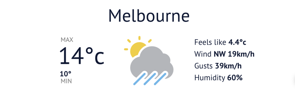 Meteoroloji Bürosu tarafından Pazar öğleden sonra yayınlanan bir videoda, meteorolog Sarah Scully, soğuk cephenin Melbourne’a sabah 2 ile 4 arasında ulaşmasının beklendiğini söyledi. Scully, “Bu cephe boyunca bir dizi sağanak ve gök gürültülü fırtına oluşması bekleniyor. Cephenin ardından daha soğuk koşullar ve küçük dolu ile düşük seviyelere kadar kar yağışı ihtimali var” dedi.