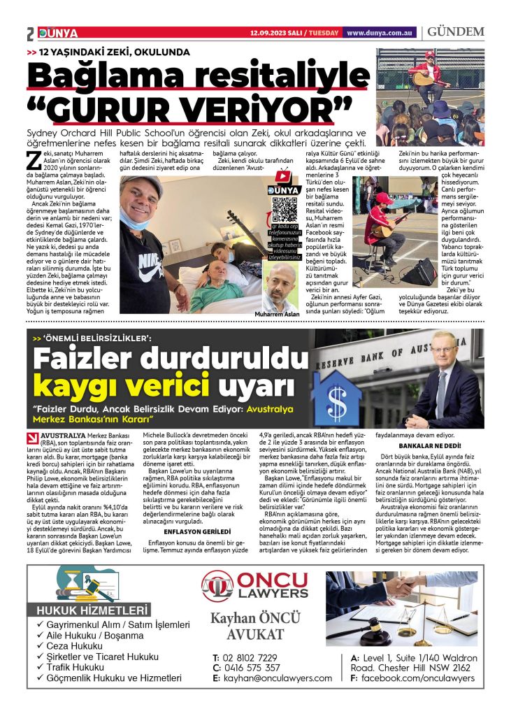 12 EYLÜL 2023 TARİHLİ BASILI GAZETEMİZDE ÇIKAN HABER