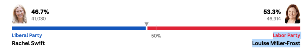 Boothby, 1949’dan beri Liberallerin elindeydi. Labor adayı Louise Miller-Frost, 70 yıllık mağlubiyet serisini sonlandırdı.