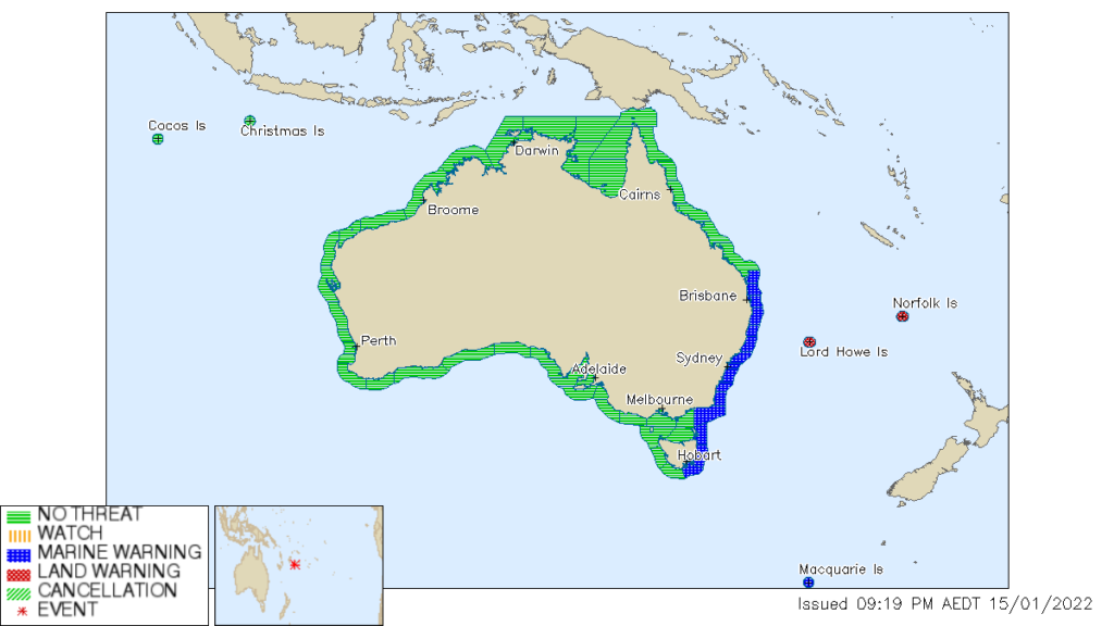 Avustralya Meteoroloji Bürosu tarafından, Victoria, NSW, Queensland, Tasmania ve Lord Howe, Norfolk ve Macquarie adaları için Tsunami uyarısı yapıldı.