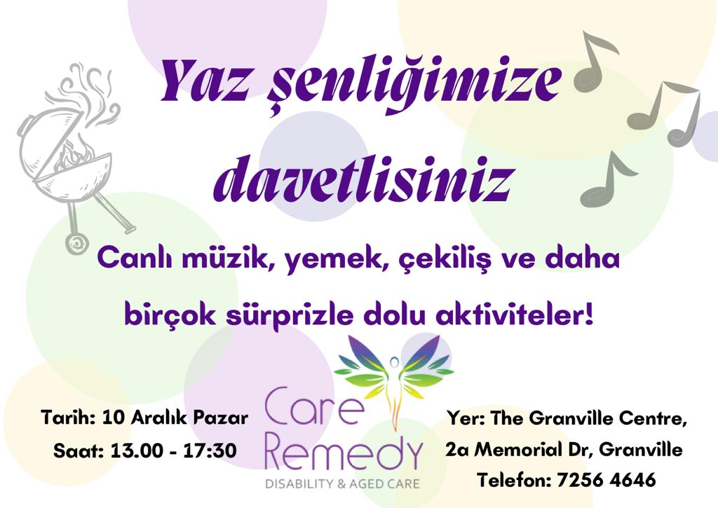 Yaşlılar ve engellilerle ilgili yaptığı çalışmalarla Sydney’den sonra Melbourne’da hizmet veren Care Remedy düzenlediği yaz şenliği ile müşterilerine unutulmaz bir gün yaşattı. VIDEO HABER TIKLAYIN