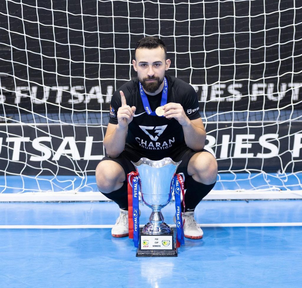 27 yaşındaki genç futbolcu Ubeyde Çiçek. Futsal şampiyonluk kupası ile birlikte.