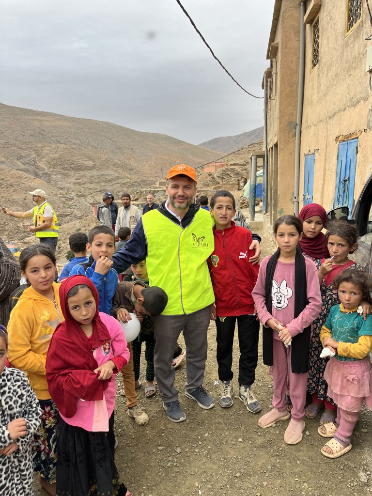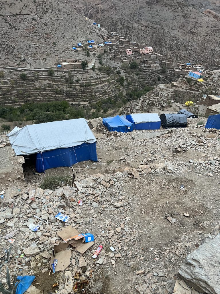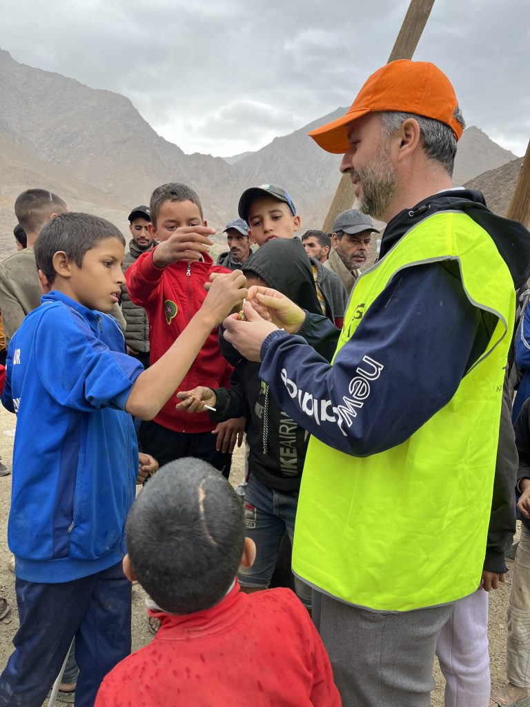 Fas’a yardım ulaştırmak için hazırlıklarımızı tamamladık. Avrupa’dan Time To Help, Amerika’dan Embrace Relief ve Fas’ta yerel bir kuruluş olan Al Basar ile iş birliği yaptık. Atlas Dağlar depremin merkeziydi ve bu bölgeye yardım ulaştırmak için zorlu bir yolculuğa çıktık. Virajlı yollar, uçurumlar, sarp dağlar karşımıza çıktı. Bazı anlarda metrekarelerce uçurumlu taşlı yollarda ilerlemeye çalıştık. Yolculuğumuz yaklaşık beş saat sürdü. Yol boyunca yıkılmış ve harap olmuş evleri gördük. Yolların kenarındaki çadır kentlerde çaresiz insanlar bizi sevinçle karşıladılar.