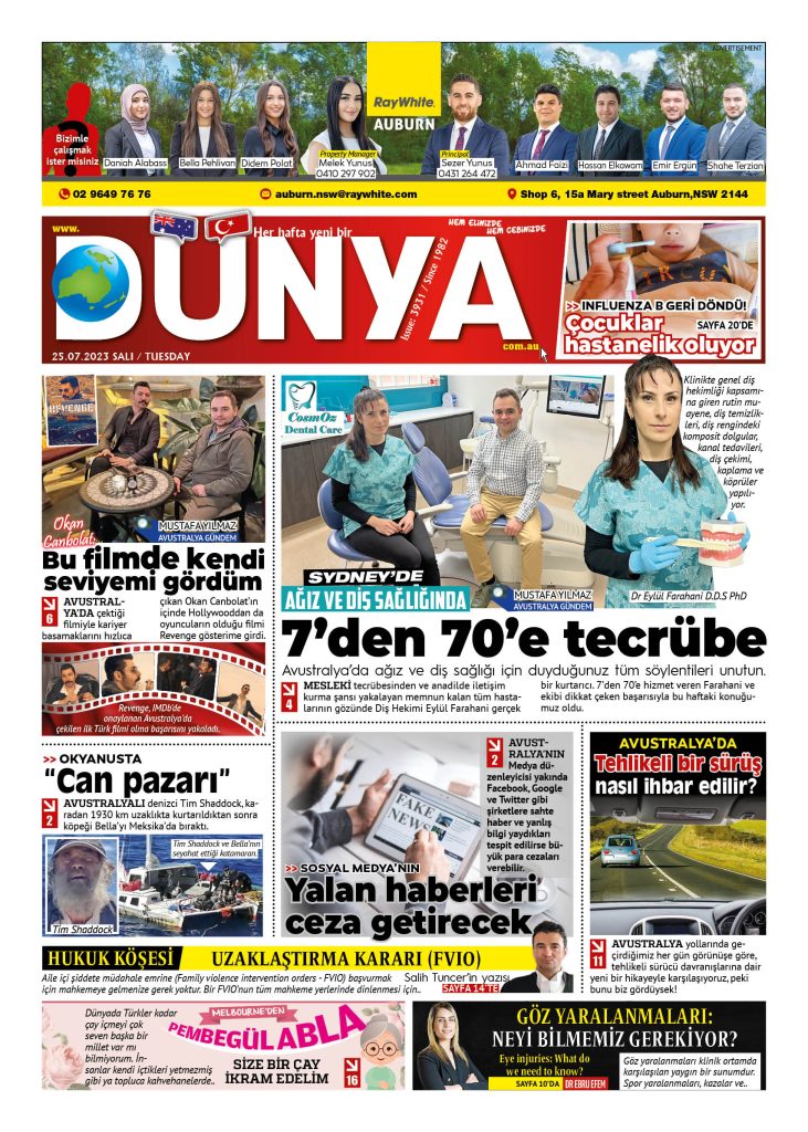 Dünya gazetesinin 25 Temmuz 2023 tarihli yeni sayısı çıktı. Gazeteye Melbourne ve Sydney’in seçkin mekanlarından ulaşabilirsiniz.