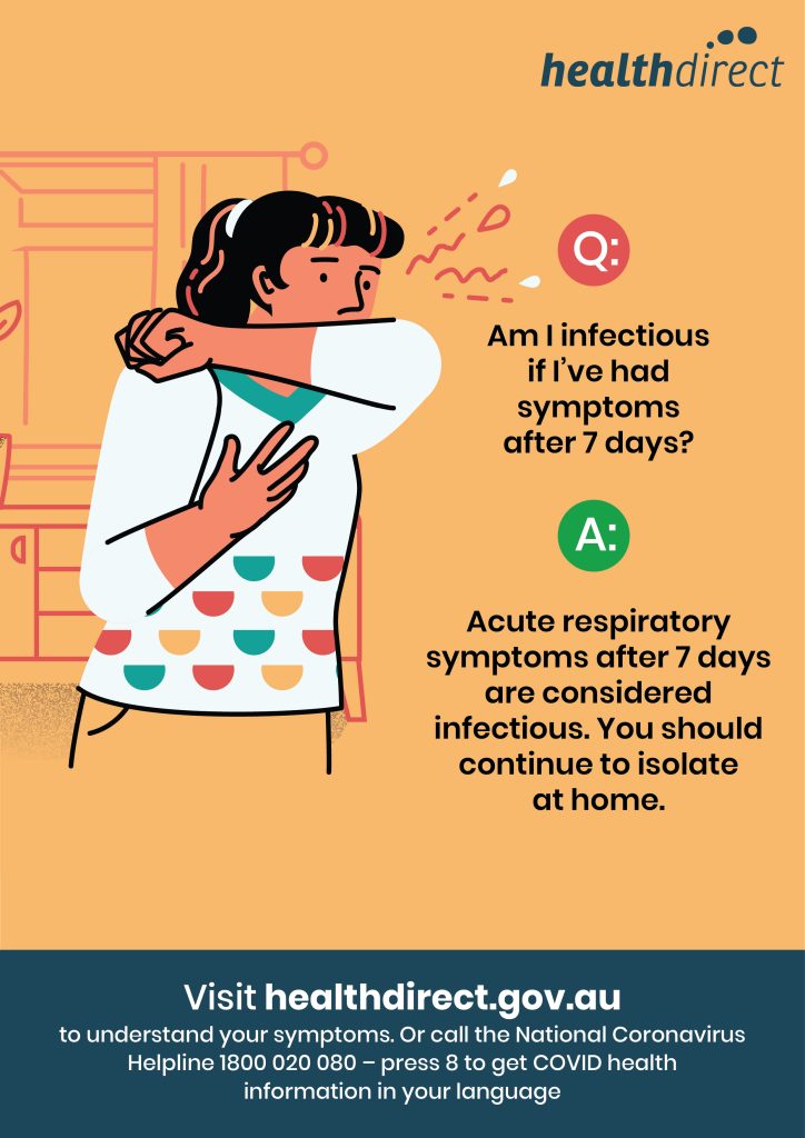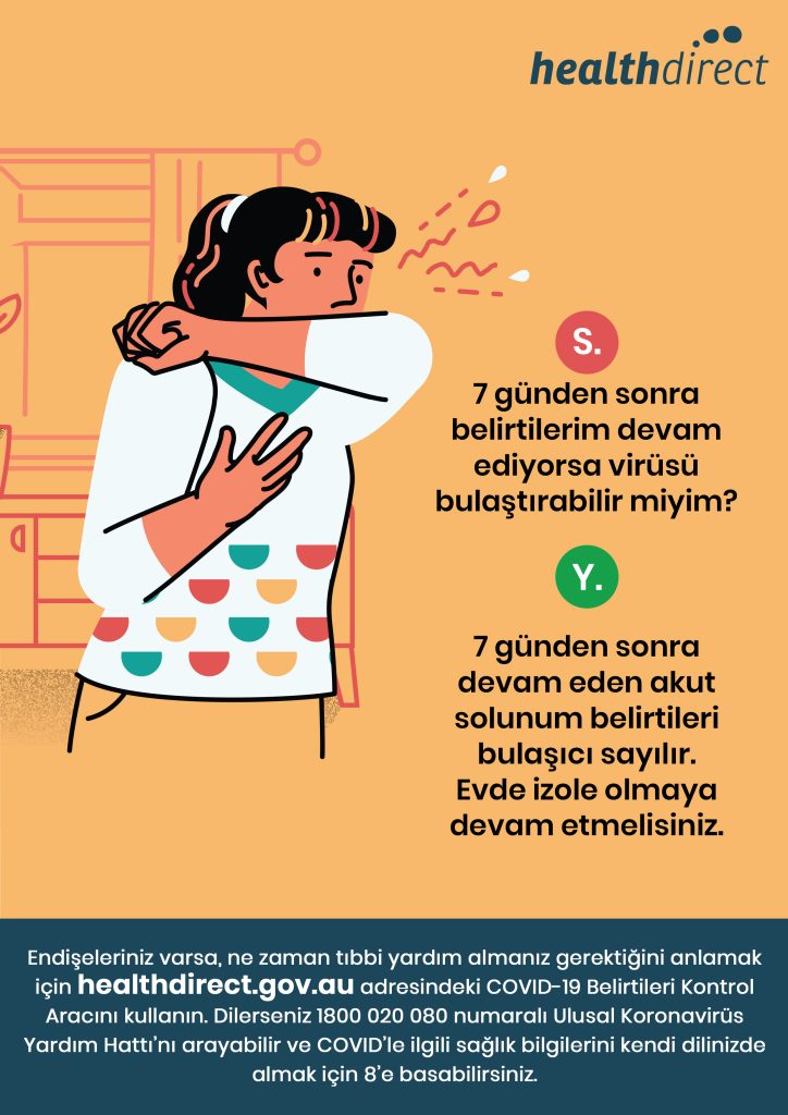 Endişeleriniz varsa, ne zaman tıbbi yardım almanız gerektiğini anlamak için healthdirect.gov.au adresindeki COVID-19 belirtileri kontrol aracını kullanın.