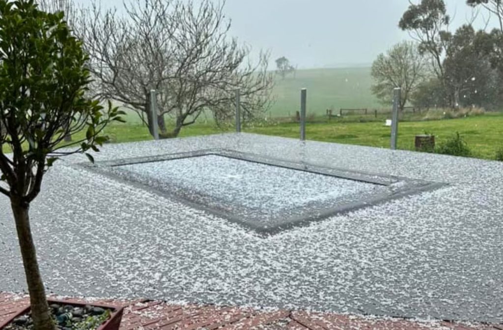 Victoria’nın merkezindeki doluların bir kısmı golf toplarından daha büyük. (Kaynak: Karen Penna)