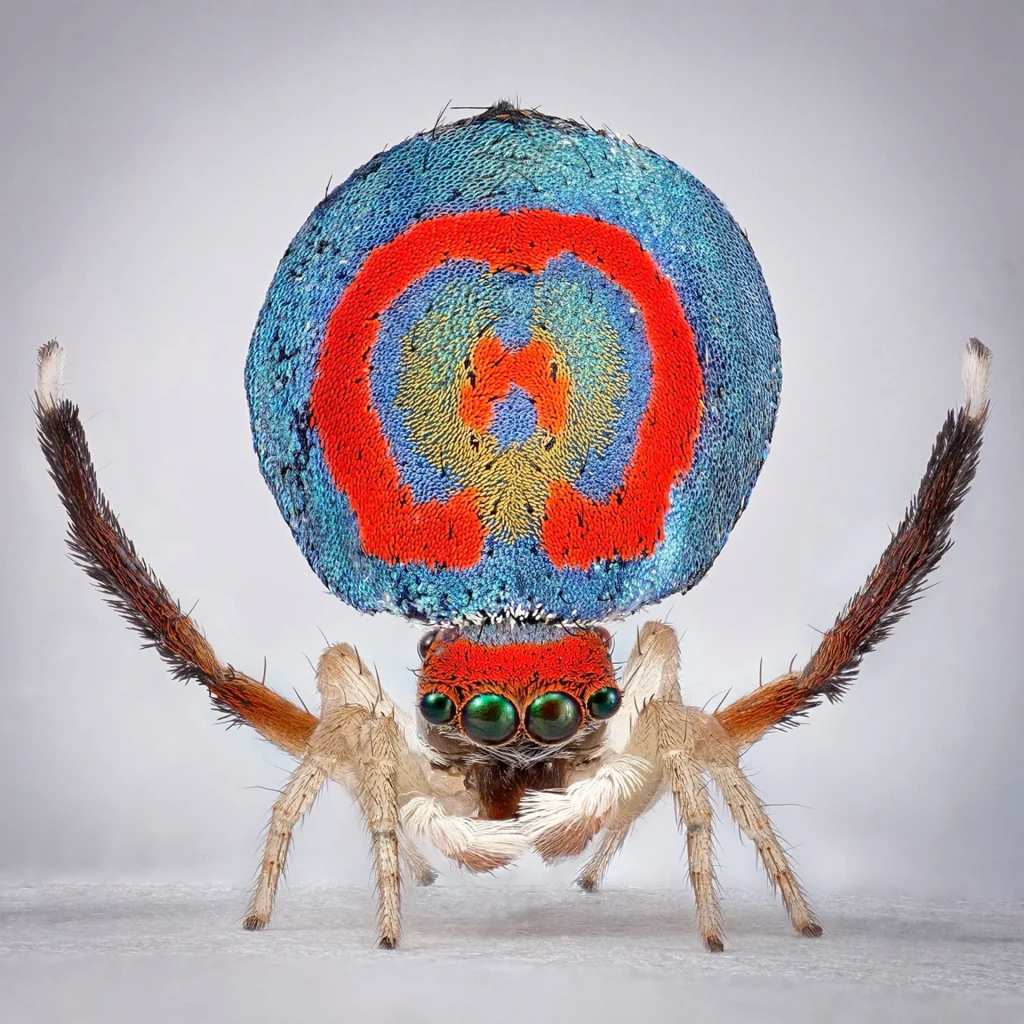 Avustralya’nın Maratus örümcekleri, 3-5 mm boyutlarıyla “tavuskuşu örümcekleri” olarak biliniyor. Bu isim, çiftleşme ritüelleri ve mücadeleler sırasında sergiledikleri gösterişli renklerden kaynaklanıyor.