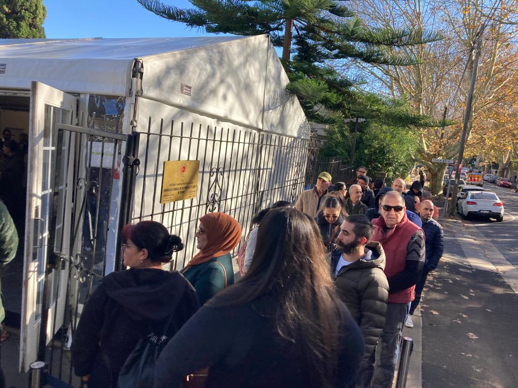 Sydney temsilcimizin aktardığı bilgiye göre Konsolosluk ve çevresinde vatandaşlar sükûnet içerisinde oylarını kullanıyorlar. Sydney’de bugün sabah 8’de 4 kurulan 4 sandıkta oy verme işlemleri başladı. Vatandaşlar 7.30’dan itibaren başkonsolosluk önünde kuyruklar oluşturdular. Şu an saat 10 itibariyle yoğunluk bitmeden devam ediyor. Konsolosluk ve çevresinde vatandaşlar sükûnet içerisinde oylarını kullanıyorlar.