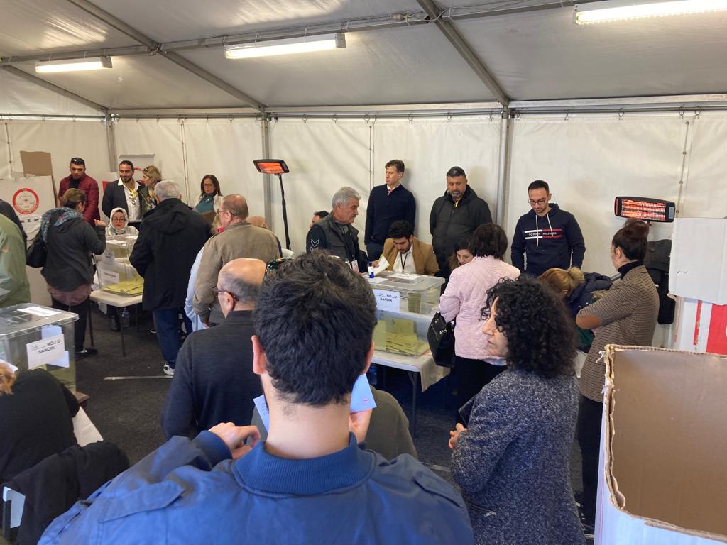 Sabah saat 7.45’de oy verme merkezine giden bir vatandaş saat 10.20 olmasına rağmen hala kuyrukta beklediğini söyledi. Kuyruğun çok yavaş ilerlediğini belirten kadın vatandaşımız gazetemize telefonla ulaşarak şunları kaydetti: sırada bekleyen yaşlılar için ara yerlere sandalye konulsa çok iyi olurdu. Bir de bazı arabalar garaja girerek garaj asansöründen çocuklu ve yaşlı gelenleri yukarıya taşımakta. Bu konuyu da pek anlam veremedik, kim nereden nasıl taşıyor, neden orasını kullanıyorlar pek anlam veremedik, dedi.