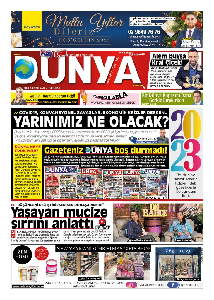 Dünya gazetesinin 20 Aralık 2022 tarihli yeni sayısı çıktı. Gazeteye Melbourne ve Sydney’in bazı seçkin mekanlarından ulaşabilirsiniz.