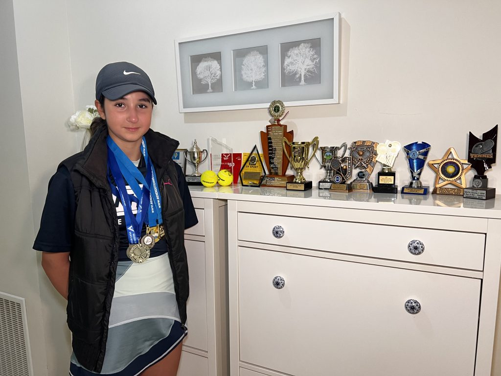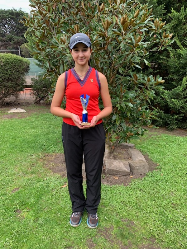 Röportaj sonrası bir kupa daha. Müsemma, 12 Haziran 2023 tarihinde Brighton East Dendy Park’ta düzenlenen 16 yaş tenis turnuvasında birincilik ödülü aldı.