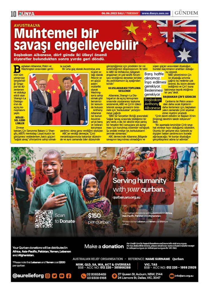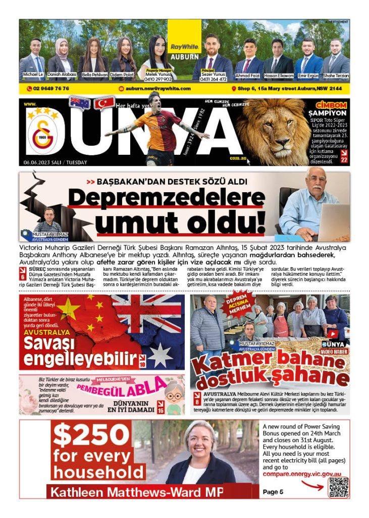 Dünya gazetesinin 6 Haziran 2023 tarihli yeni sayısı çıktı. Gazeteye Melbourne ve Sydney’in seçkin mekanlarından ulaşabilirsiniz.