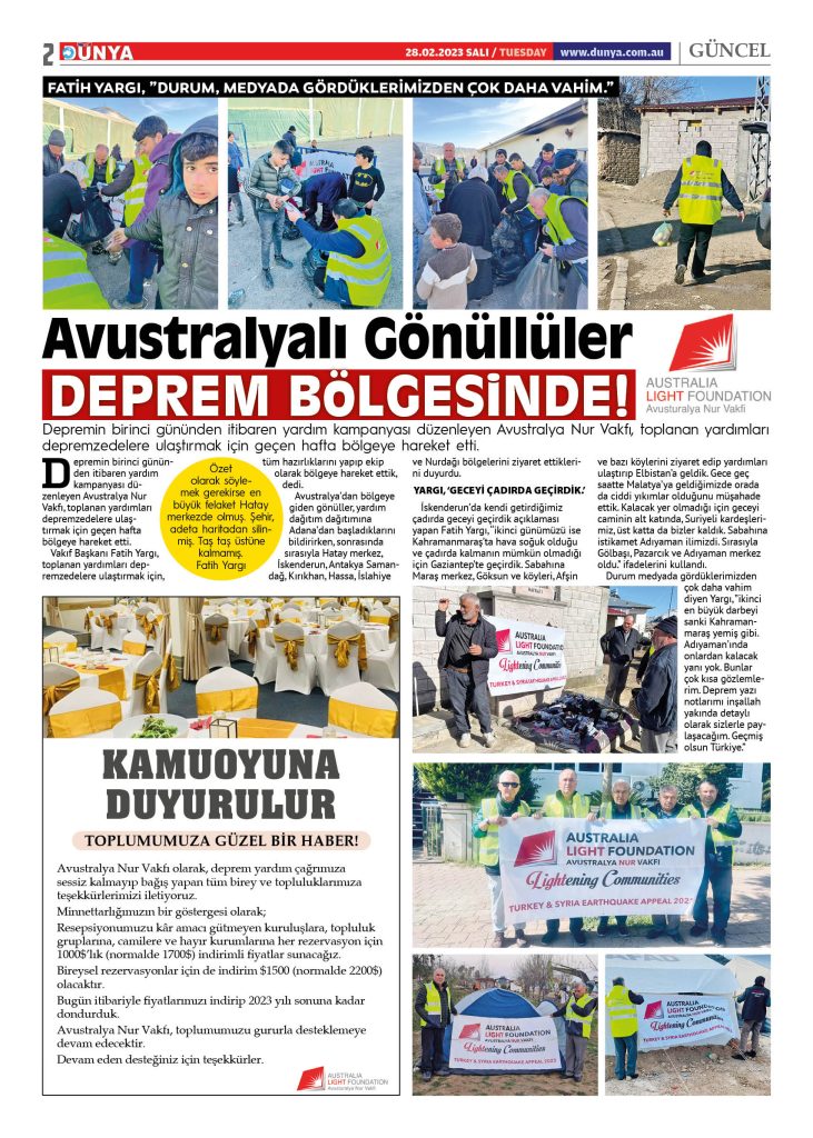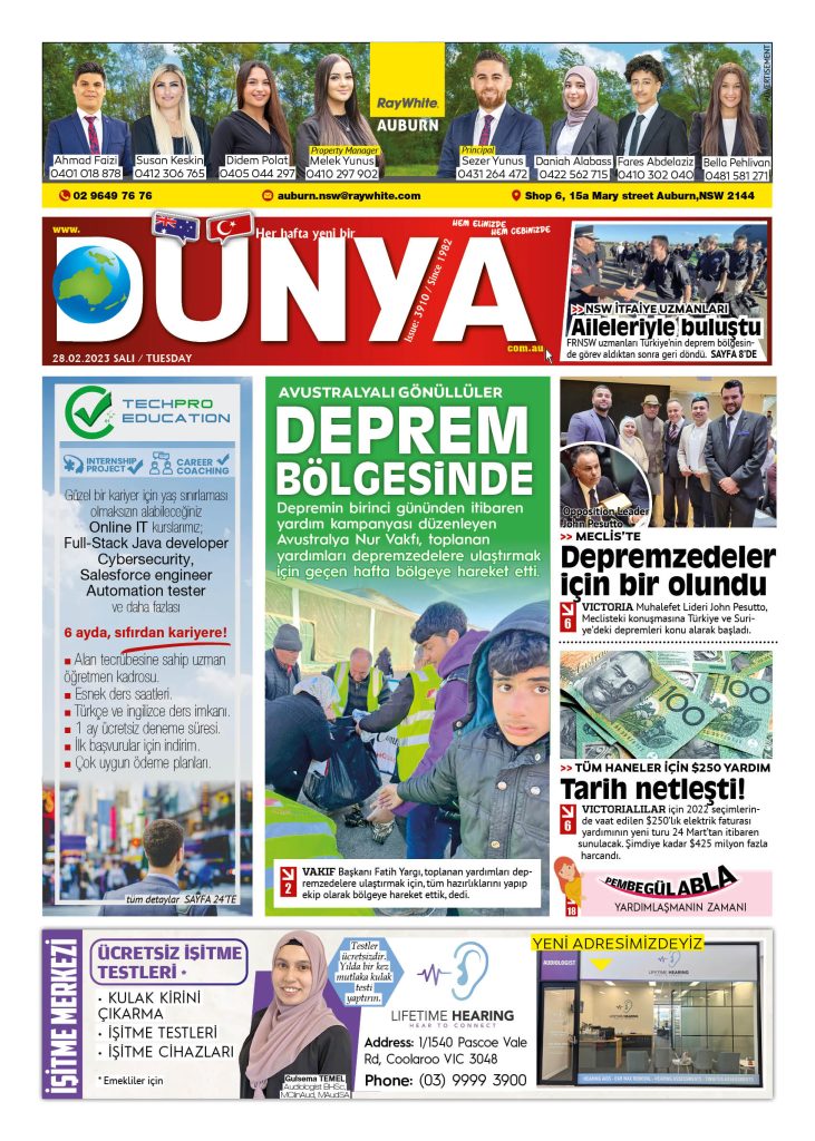 Dünya gazetesinin 28 Şubat 2023 tarihli yeni sayısı çıktı. Gazeteye Melbourne ve Sydney’in seçkin mekanlarından ulaşabilirsiniz.