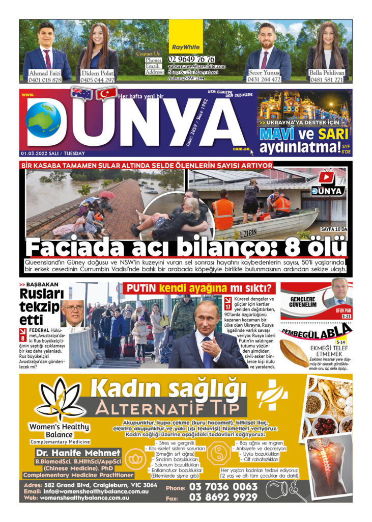 Dünya gazetesinin 01 MART 2022 tarihli yeni sayısı çıktı. Gazeteyi Melbourne ve Sydney’in seçkin mekanlarından ulaşabilirsiniz.