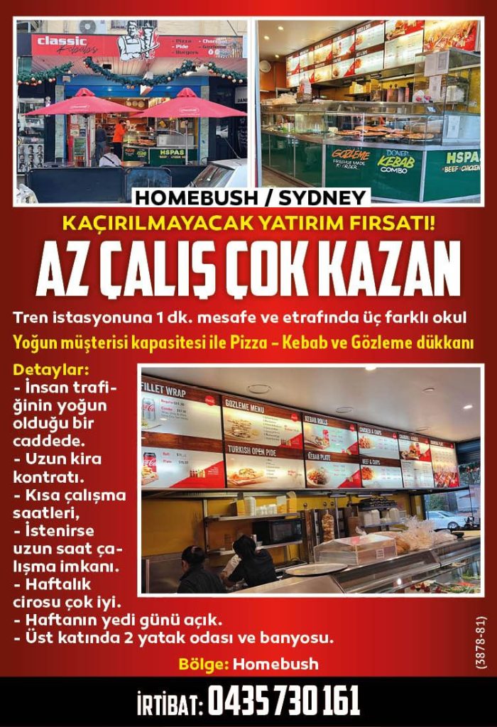 Yoğun müşterisi kapasitesi ile Pizza – Kebab ve Gözleme dükkanı