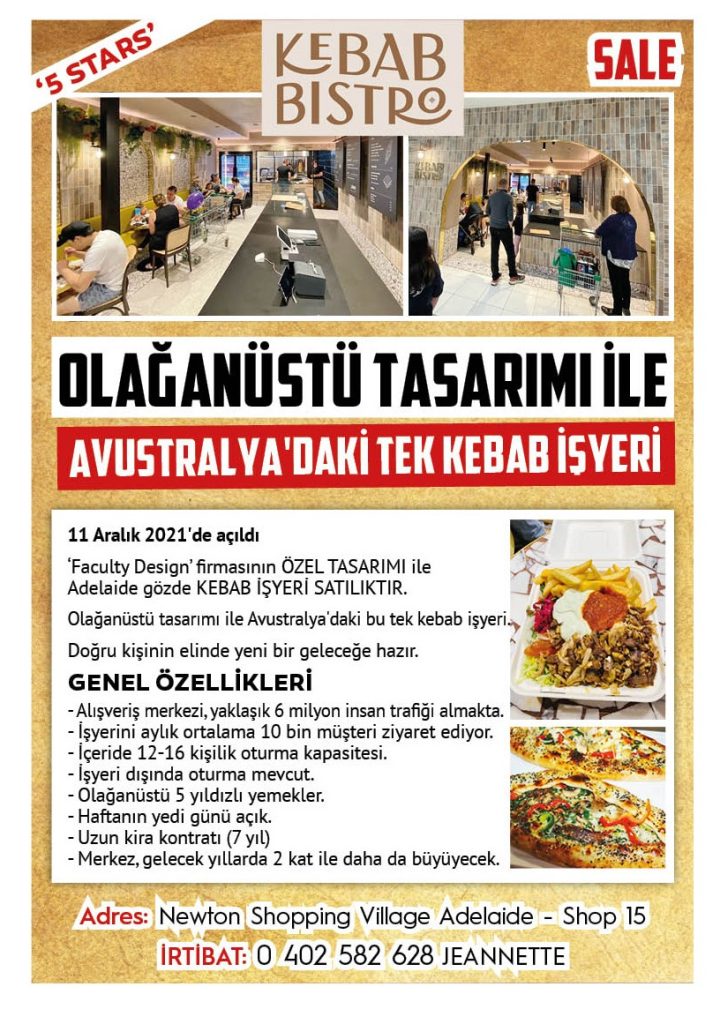 ‘Faculty Design’ firmasının ÖZEL TASARIMI ile Adelaide’in gözde KEBAB İŞYERİ SATILIKTIR.