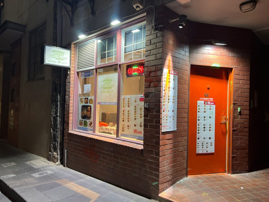 Lazzat Uygur restoranı, Little Latrobe caddesinin dar sokağından aşağıya doğru yürürken, (dışarıdan gösterişsiz bir işyeri gibi dursa da) kırmızı kapısından içeri girince ben nasıl olurda buraya daha önce gelmedim, diyenlerden oluyorsunuz.