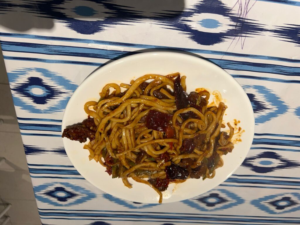 Muhammed, ‘hamuru elle yoğurup birkaç saat işliyoruz. Hamur dinlendikten sonra elle noodles haline getiriliyor. 3-5 saat mesai alan bir yemek. Hazır noodles gibi kesinlikle değil. Yemeklerimiz yüzde 100 otantik Uygur yemekleridir,’ diyerek lezzetin sırrını açıklıyor.