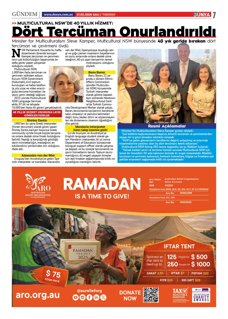 DÜNYA GAZETESİNİN YENİ SAYISI ÇIKTI ‘Avustralya Dünyası’