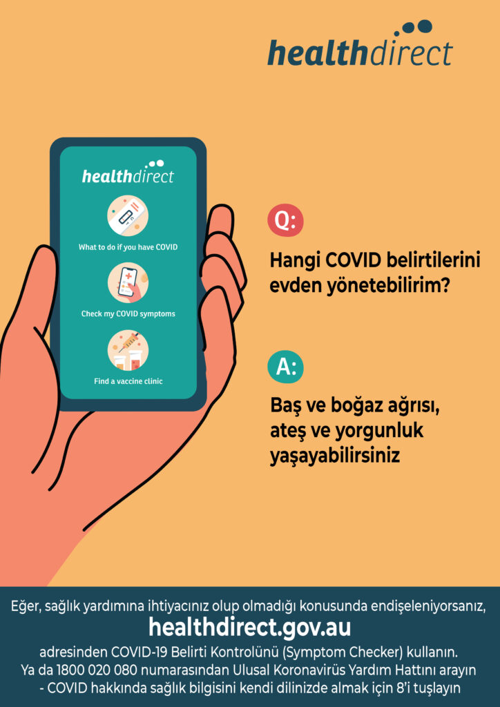 Healthdirect, Avustralya’daki kültürel ve dilsel çeşitli toplulukların, temel bilgi desteğine erişmesine yardımcı oluyor. Ulusal halk sağlığı bilgilendirme ve danışma servisi Healthdirect, COVID-19 belirtilerini yönetme hakkında 15 dile çevrilmiş bilgi ve tavsiyeler yayınladı.
