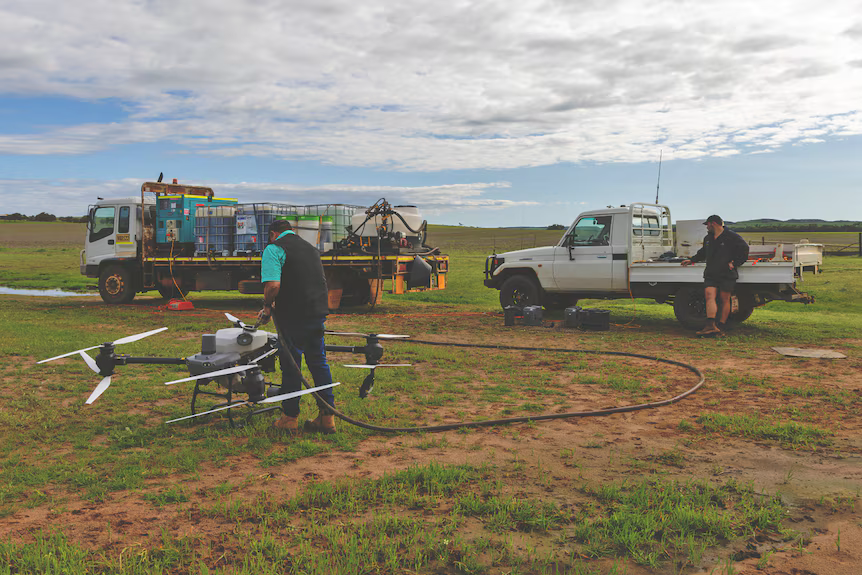 Vlahovic, başka bir görev için drone’u dolduruyor. (ABC Midwest Wheatbelt: Chris Lewis)