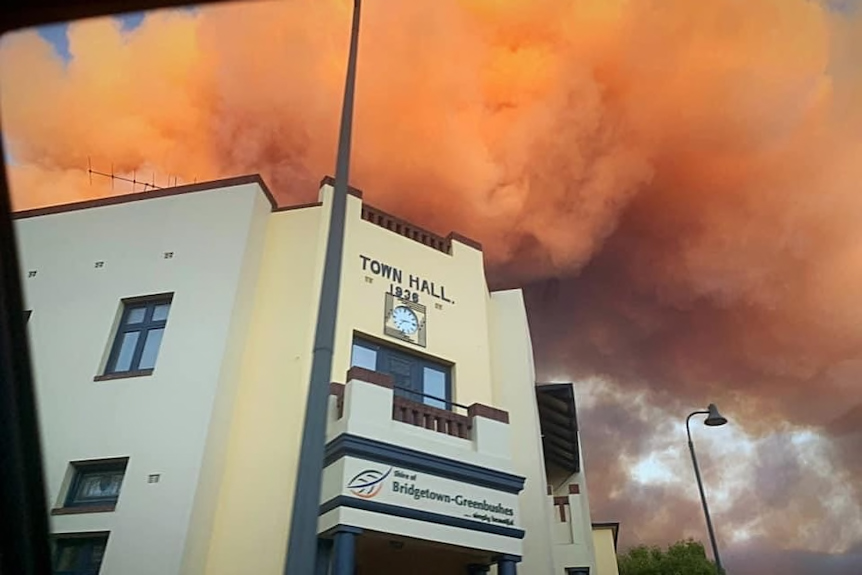Bridgetown belediye binasının üzerinde orman yangının dumanı. (Tedarik: Michelle Moir Treestays)