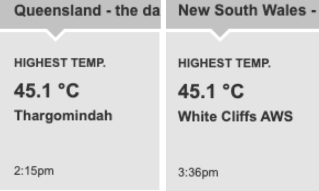 Queensland’deki Thargomindah ve New South Wales’teki White Cliffs, bu sıcaklıkları aşarak 45.1°C’ye ulaştı. Öte yandan, New South Wales’in neredeyse tamamında fırtınaların etkili olması bekleniyor.