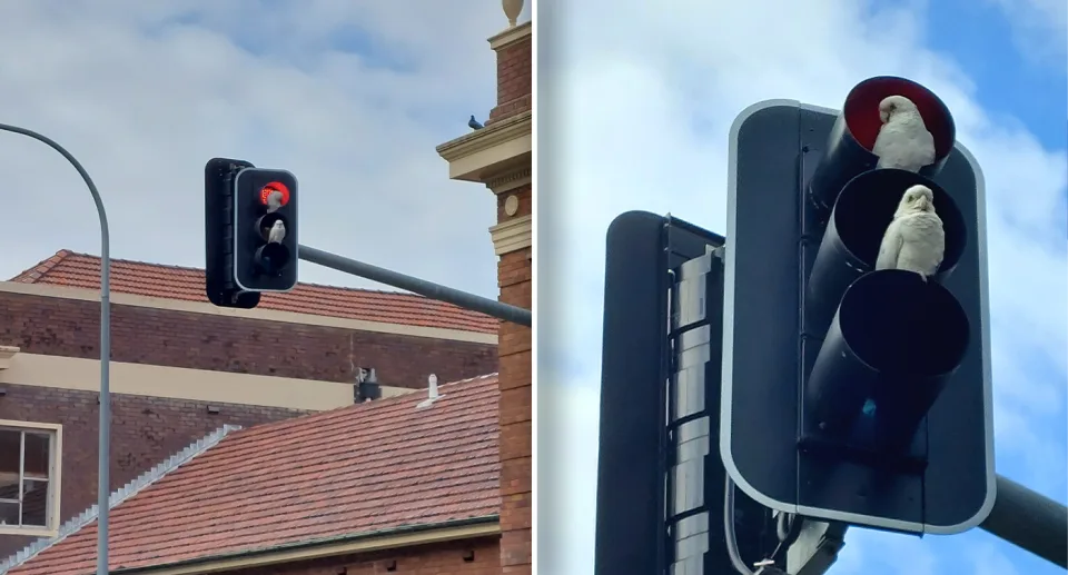 Sydney Manly’de trafik ışıklarında yuva yapan iki Corella görüldü. Kaynak: Simon Crabtree-Hayes