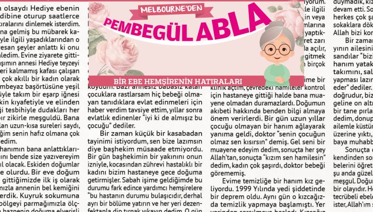 Sonuçta çok kıymetli ebe ablamız kendinden sonraki gelen ebelere tecrübelerini öğretmiş, eğitmiş emekli olmuş, şu anda güzel güzel dua ve ibadetleriyle meşgul. Doğum insanoğlunun en hassas bir olayıdır. Herkes yavrusunu güvenilir, tecrübeli ebelerin refakatinde karşılamak ister, Allah’ım sayılarını artırsın İnşaallah.