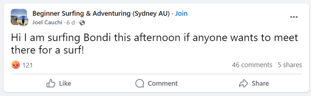 “Merhaba, eğer sörf yapmak için buluşmak isteyen varsa bu öğleden sonra Bondi’de sörf yapıyo olacağım!” dedi.