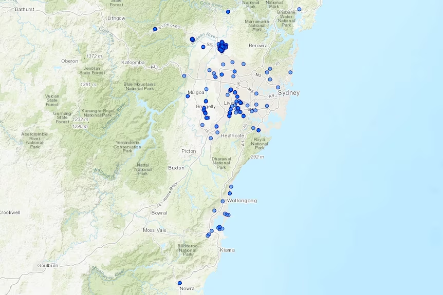 NSW’deki yayılmasını gösteren bir harita.(Tedarik: Temel Endüstriler Bakanlığı)