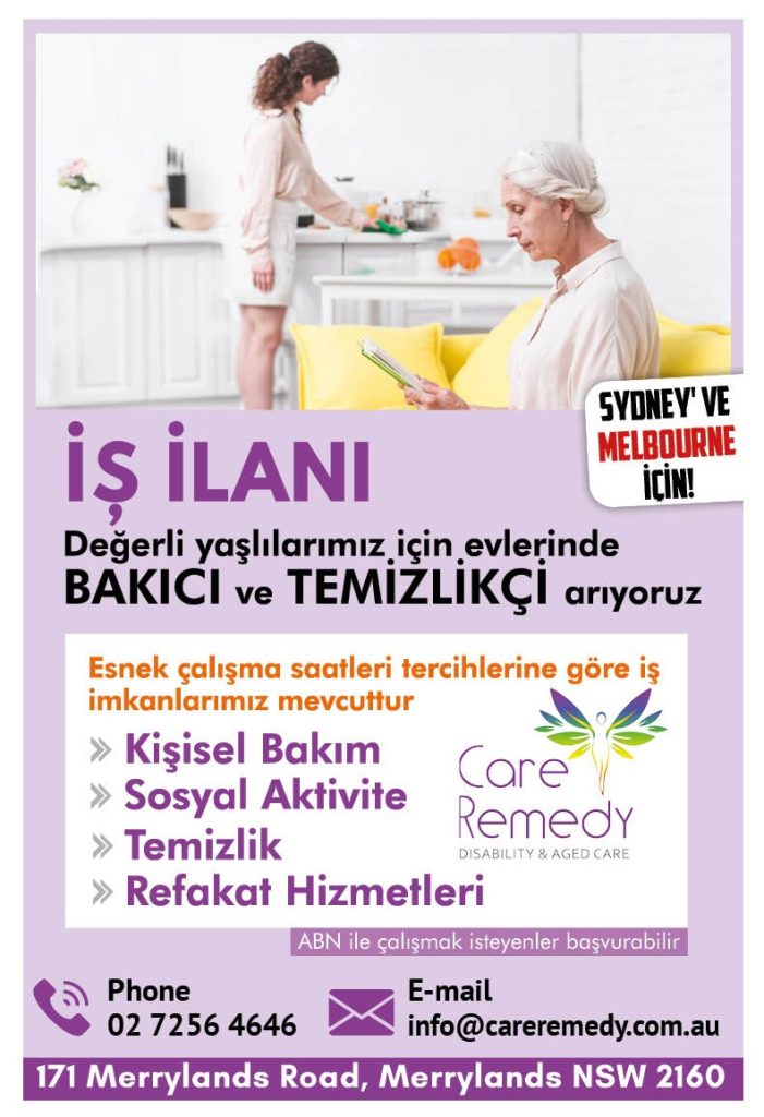 Melbourne Care Remedy’nin açılmasıyla istihdama da katkı sağlayan firma yetkilileri, “Bir süredir iş ilanları verdik. Burada da güvenilir, bu işi severek yapan birçok personele ihtiyacımız olacak. Bu işi isteyen kişiler Sydney numaramızı arayıp görüşebilir. Birçok bölgede hizmet vereceğimiz için iş taleplerini bekliyoruz.” diyerek iş arayanların kendilerine ulaşmasını istedi.
