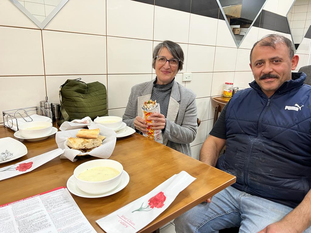 Federal Milletvekili Maria Vamvakinou ve Bizzler Kebab sahibi Mesut Aceban. Seçimler öncesi. (Fotoğraf: Dünya)
