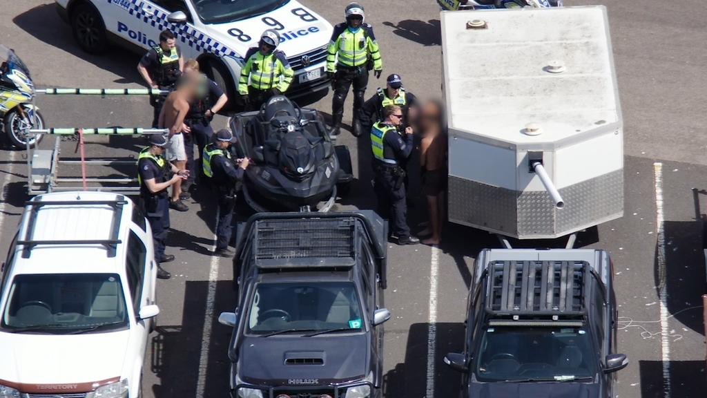 Victoria Polisi, Cumartesi günü saat 15:00 civarında devriye gezen polislerin, yasaklı bir bölgede hız yapan bir jet ski sürücüsünü gördüğünü belirtti. Sürüşün, suya giren kişileri son anda kılpayı kaçırarak yapıldığı iddia edildi.