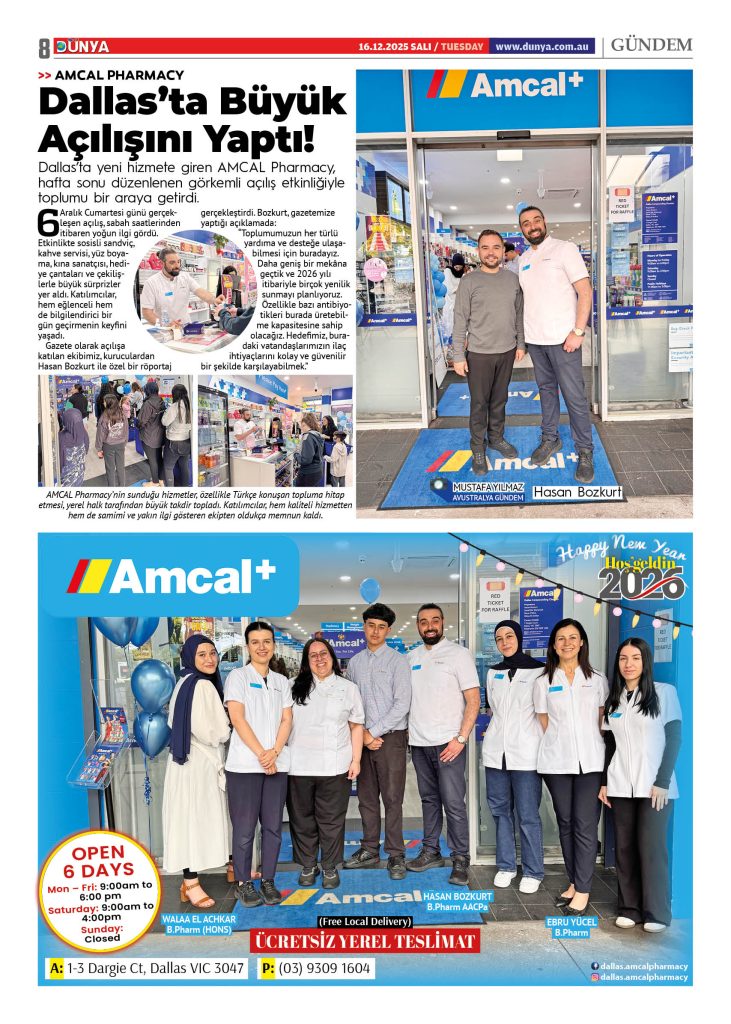 AMCAL Pharmacy’nin sunduğu hizmetler, özellikle Türkçe konuşan topluma hitap etmesi, yerel halk tarafından büyük takdir topladı. Katılımcılar, hem kaliteli hizmetten hem de samimi ve yakın ilgi gösteren ekipten oldukça memnun kaldı.
