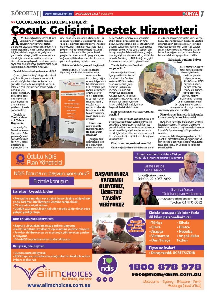 AIIM Choices’tan James Price, Dünya Gazetesi’nden Mustafa Yılmaz’ın sorularını yanıtlayarak destek gerektiren çocuklara yönelik hizmetler hakkında kapsamlı bilgiler sunuyor. Bu rehber bilgiler, ailelerin engeller ve gelişimsel gecikmelerle başa çıkabilmelerine yardımcı olmak için mevcut kaynakları ve destek sistemlerini vurgulayarak, çocukların potansiyellerini en üst düzeye çıkarmalarına nasıl katkıda bulunabileceğini ele alıyor.