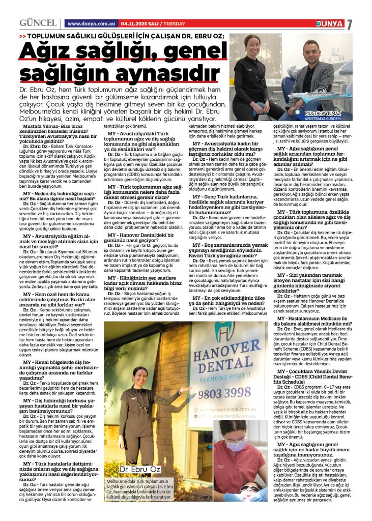 Australian NewsJanuary 11, 2026Diş Doktoru Ebru Öz Yeni Kliniğinde