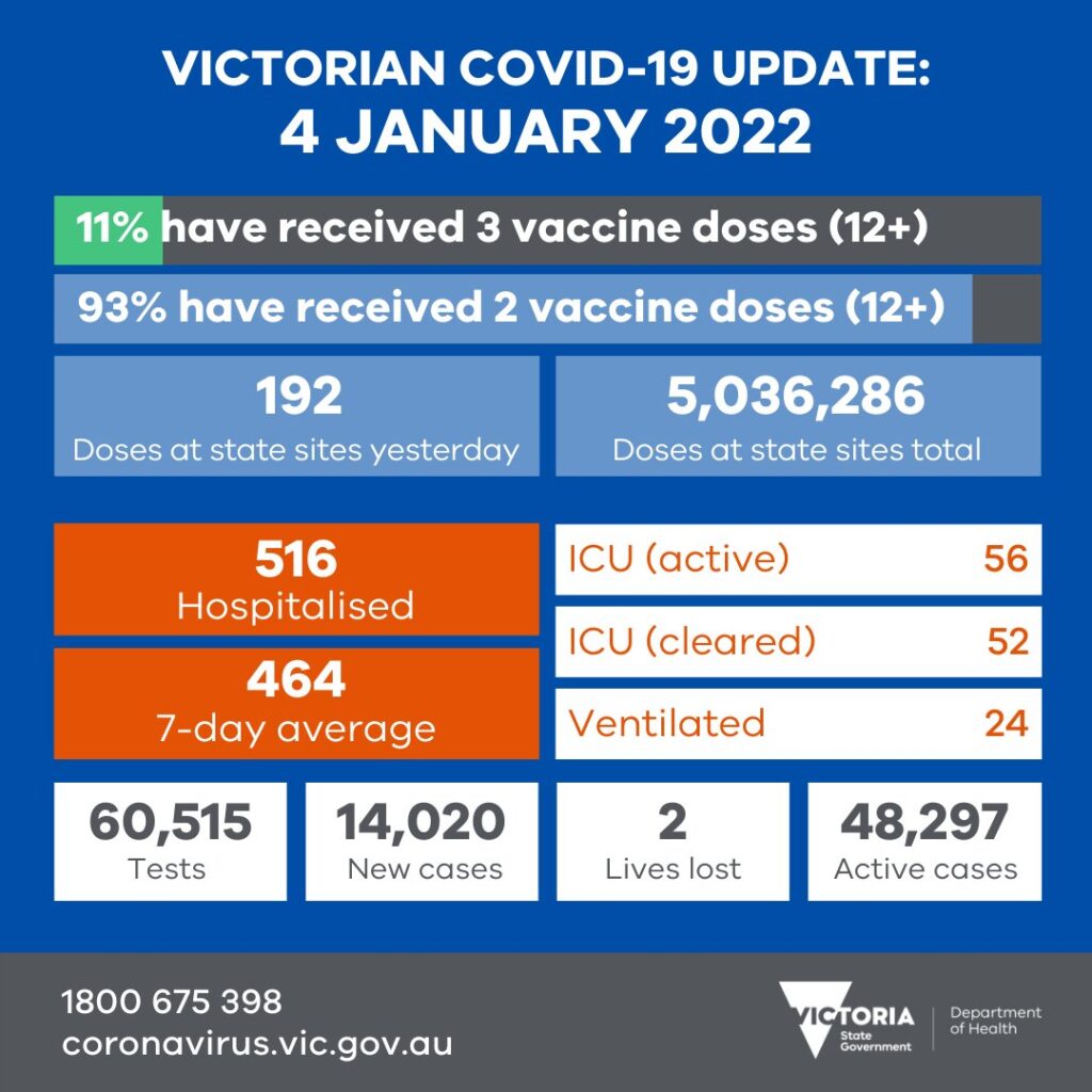 Victoria 14.020 COVID-19 vakası ve iki ölüm kaydetti. Hastaneye yatış sayısı 516’ya yükseldi.