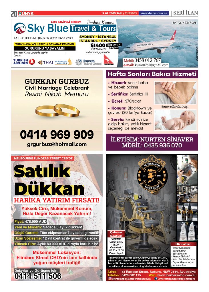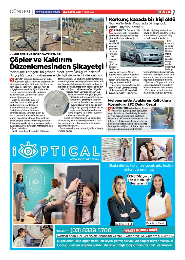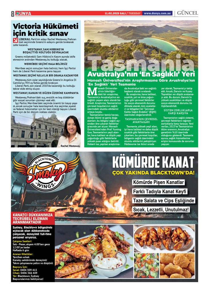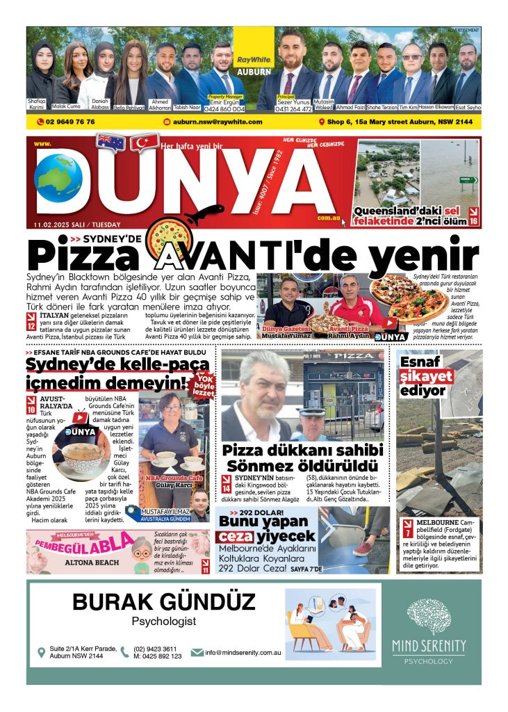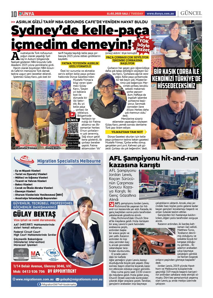 Dünya gazetesinin 11 ŞUBAT 2025 tarihli yeni sayısı çıktı! Melbourne ve Sydney öne çıkan mekanlarından gazeteye ulaşabilirsiniz.