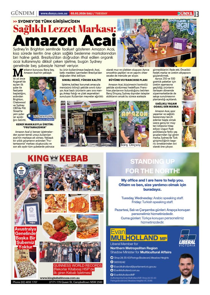 DÜNYA GAZETESİNİN YENİ SAYISI ÇIKTI ‘Avustralya Dünyası’