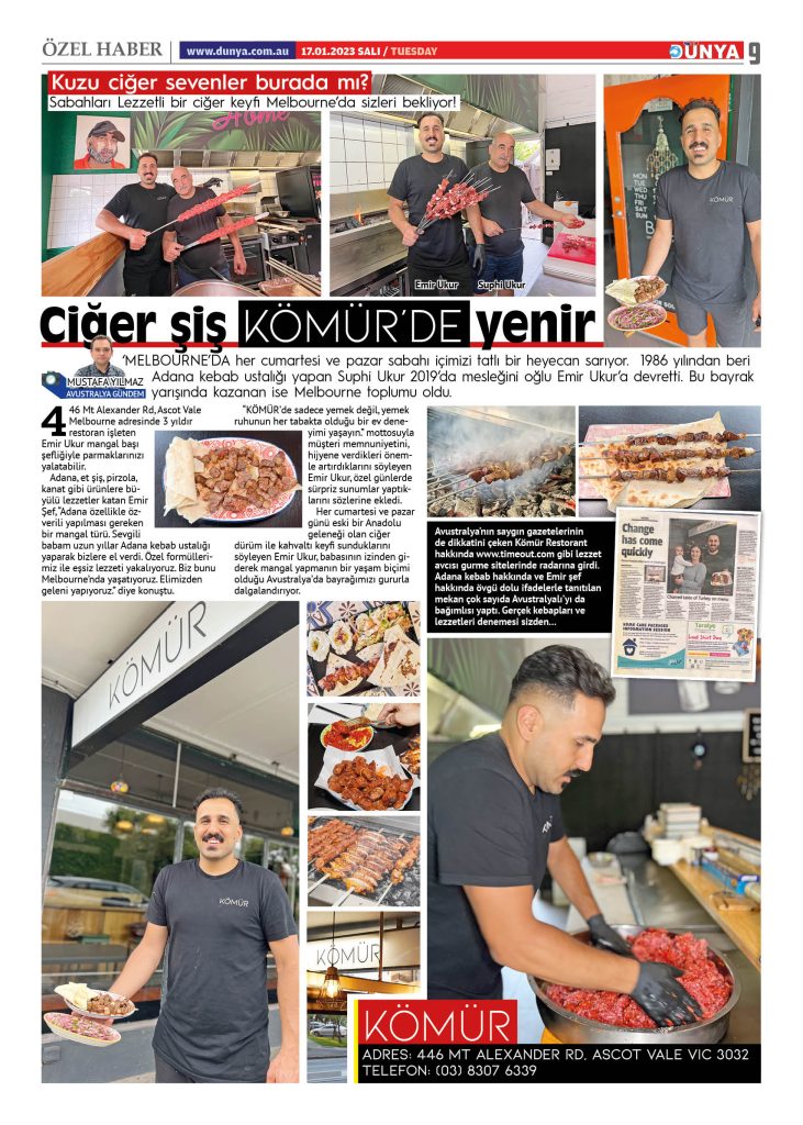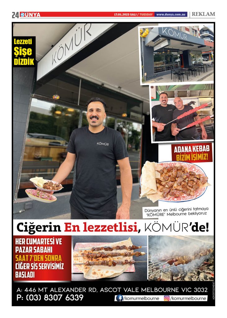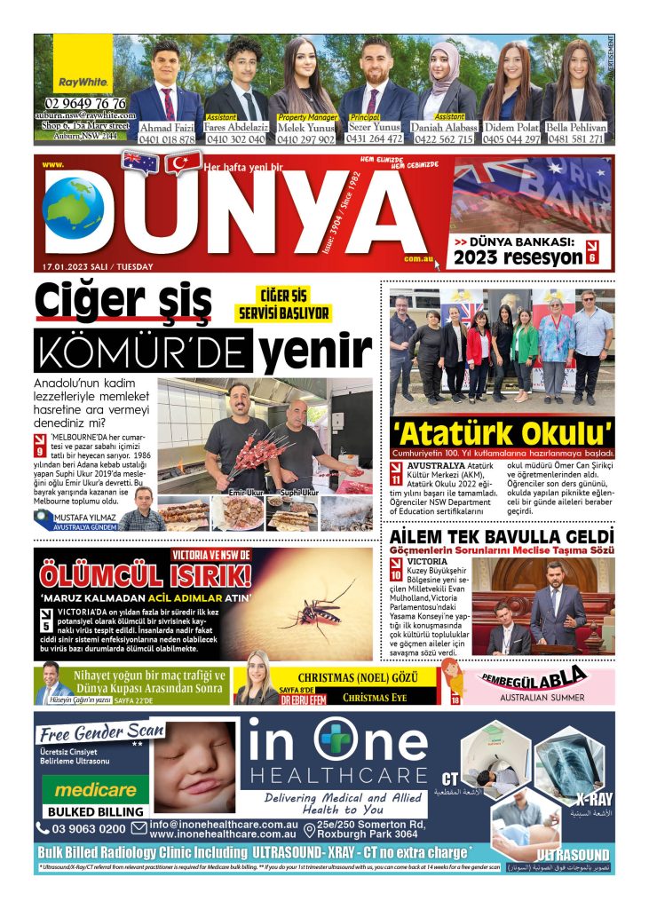 Dünya gazetesinin 17 Ocak 2023 tarihli yeni sayısı çıktı. Gazeteye Melbourne ve Sydney’in seçkin mekanlarından ulaşabilirsiniz.
