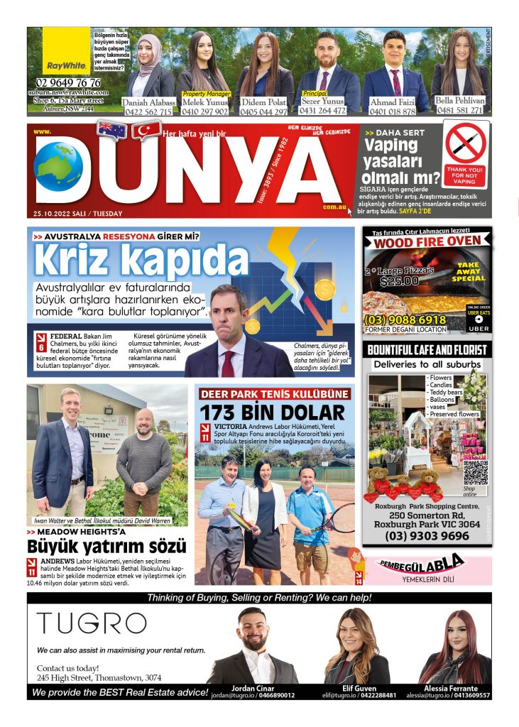 DÜNYA GAZETESİNİN YENİ SAYISI ÇIKTI ‘Avustralya Dünyası’