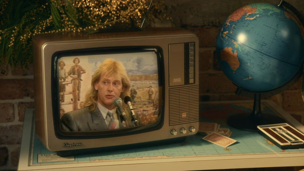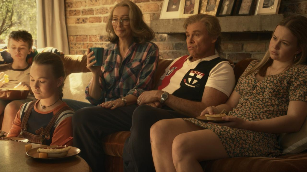 Arka planda Farnham’ın hiti çalarken, ikonik Aussie olayları ekranda parlıyor;
