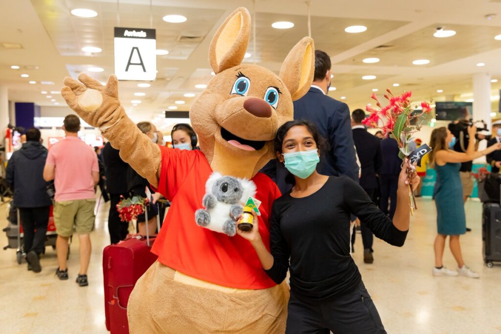 Sydney’e gelenler, koala ve kanguru oyuncakları, Vegemite ve okaliptüs dallarıyla karşılanırken, Melbourne gelenler canlı müzik eşiliğinde sevdiklerine sarıldı.