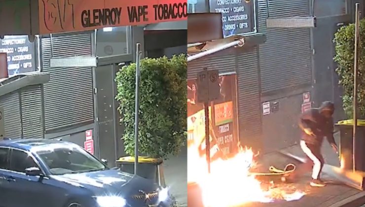Victoria Polisi tarafından yayınlanan yeni CCTV, bir başka kundaklama saldırısı ortaya çıkardı. Görüntülerde, Melbourne Glenroy’da bir sigara dükkanının alevler içinde kaldığı görülüyor.