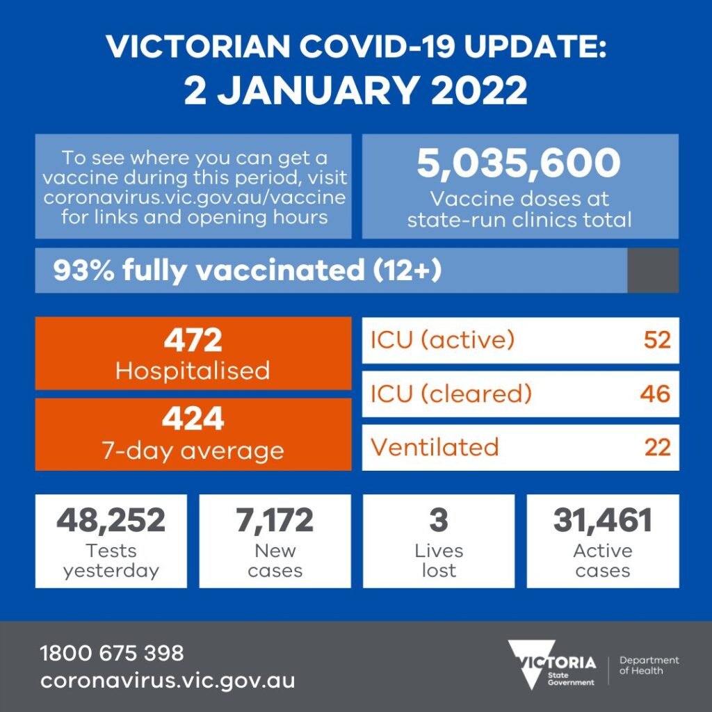 Victoria 7.172 yeni COVID-19 vakası ve üç ölüm kaydetti.