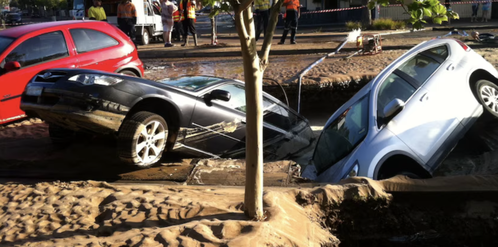 Victoria’da geçmişte yaşanan bazı olaylarda altyapı arızaları sinkhole’lara neden oldu. Kew’de 2020 yılında kırılan bir stormwater pipe, bir parkta büyük bir sinkhole oluşturmuştu. Port Melbourne’de ise 2014 yılında patlayan bir water main, araçların içine düştüğü büyük bir çöküntüye yol açmıştı.