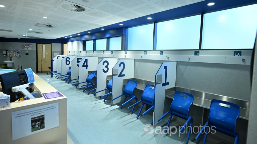 Melbourne’un ilk enjeksiyon odası Kuzey Richmond’da açıldı ve 2023’te kalıcı hale getirildi. Görüntü: James Ross/AAP PHOTOS