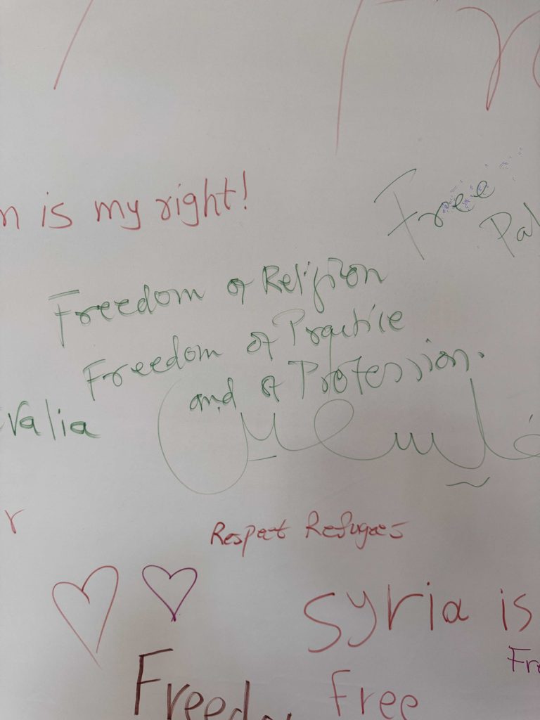 Etkinlik alanının girişinde kurulan beyaz örtü üzerine ziyaretçiler, özgürlük hakkında kendi düşüncelerini ve umutlarını yazdı. Ayrıca öğrenciler tarafından hazırlanan resimler, dualar ve mektuplar da festival boyunca sergilendi. Bu anlamlı köşe, ziyaretçilerden büyük ilgi gördü.
