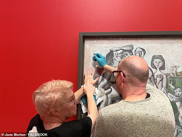 Extinction Rebellion Australia adıyla bahar takviminin bir parçası olarak düzenlenen etkinlikte Pablo Picasso’nun Kore’de Katliam başlıklı tablosu sergilendi.